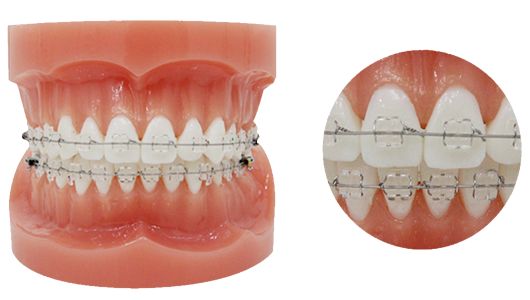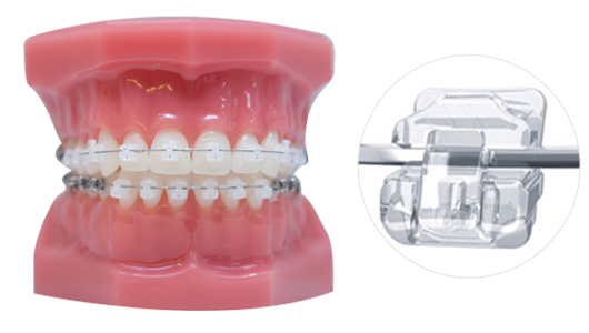치아 색상과 매우 흡사한 세라믹 브라켓은 교정 중에도 브라켓에 대한 부담을 덜 줄 수 있으며,